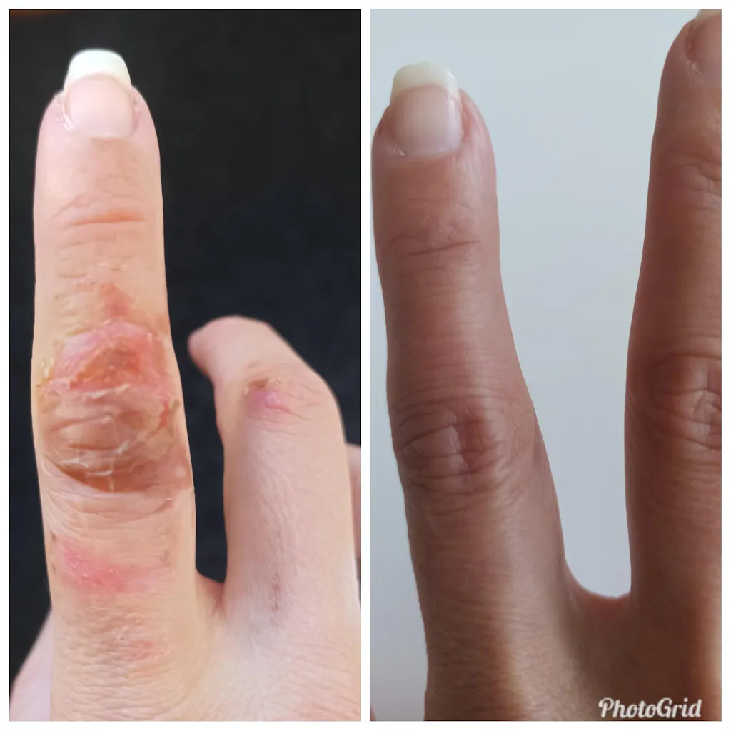 Mi experiencia con este producto ha sido para tratar una quemadura. Se me cayó aceite hirviendo de la sartén encima del dedo índice de la mano derecha y me salpicó un poco el dedo corazón. La quemadura hizo que me salieran grandes ampollas por el dedo más afectado. Unos días después de quemarme recordé que Antón y Iago habían comentado la experiencia con este producto, de un amigo suyo que se había quemado la cara. Me puse en contacto con Antón para preguntar si pasados ya unos días el producto me haría efecto igualmente, sobre todo pq ya tenía las ampollas y lo ideal es empezar con el producto tan pronto te quemes. Antón me animó a probarlo igualmente ya que daño no me iba a hacer. Empecé a rociar el dedo con el producto como unos 4/5 días después de la quemadura y sorprendentemente no me ha quedado ni una marca!!! Increíble, no conozco a nadie q se haya quemado con aceite hirviendo y que la cura haya sido total. Unas semanas antes de mi quemadura, se quemó el dorso de la mano mi compañera de trabajo, también con aceite, ella tiene una marca q se ve con claridad, y la tuvo tapada pq le decían q no le diera el sol, le ponía una crema súper top y el resultado es q tiene la marca. Yo no tapé la quemadura ni del Sol ni de nada, sólo he utilizado el activador de respuesta molecular y ni rastro de la quemadura. Envío fotos del antes y del después para que la gente lo pueda comprobar. Es un gran producto, mi experiencia ha sido muy buena, lo recomiendo. Gracias Antón y Iago por todas vuestras aportaciones a nuestra salud y por vuestro proyecto.
