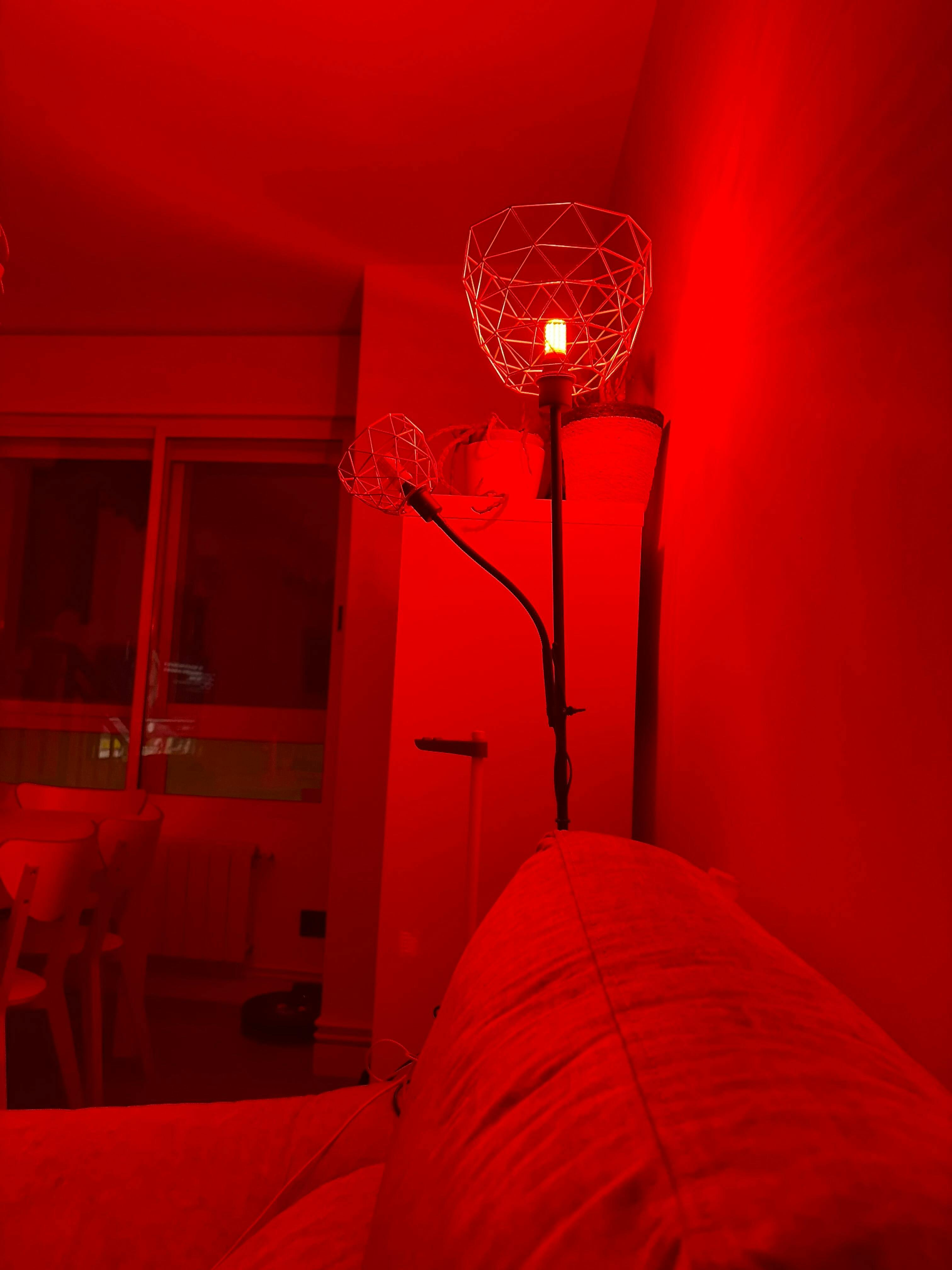 Las bombillas de luz roja nos han funcionado muy bien para la noche. Las usamos sobre todo cuando ya estamos bajando el ritmo del día y ayudan mucho a entrar en un estado de relajación.